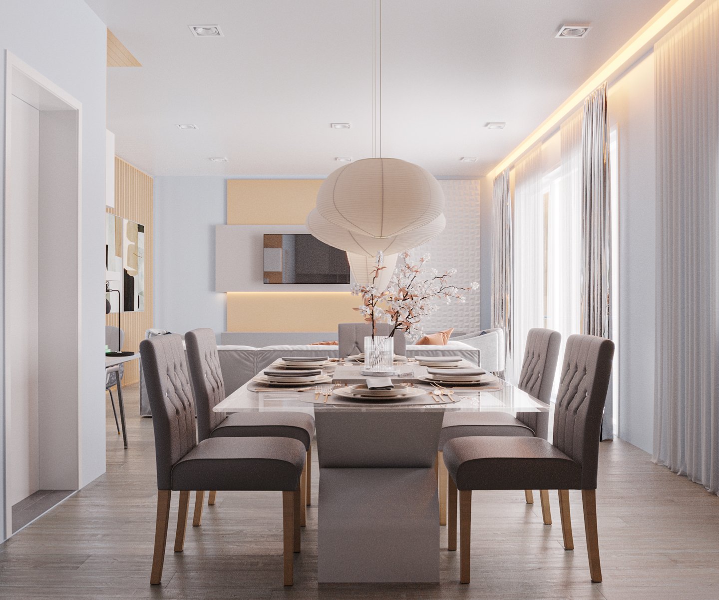 Projecto de interior de uma habitação para o consulado Britânico em Luanda/Angola, com uma área de 256,55 m, tratava-se de uma habitação colonial aonde a proposta era fazer uma reabilitação interna de formas a tornar os ambientes mais aconchegantes, funcional e dar as devidas condições de habitabilidade para quem iria utiliza.