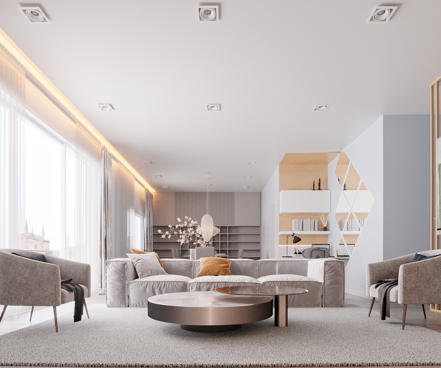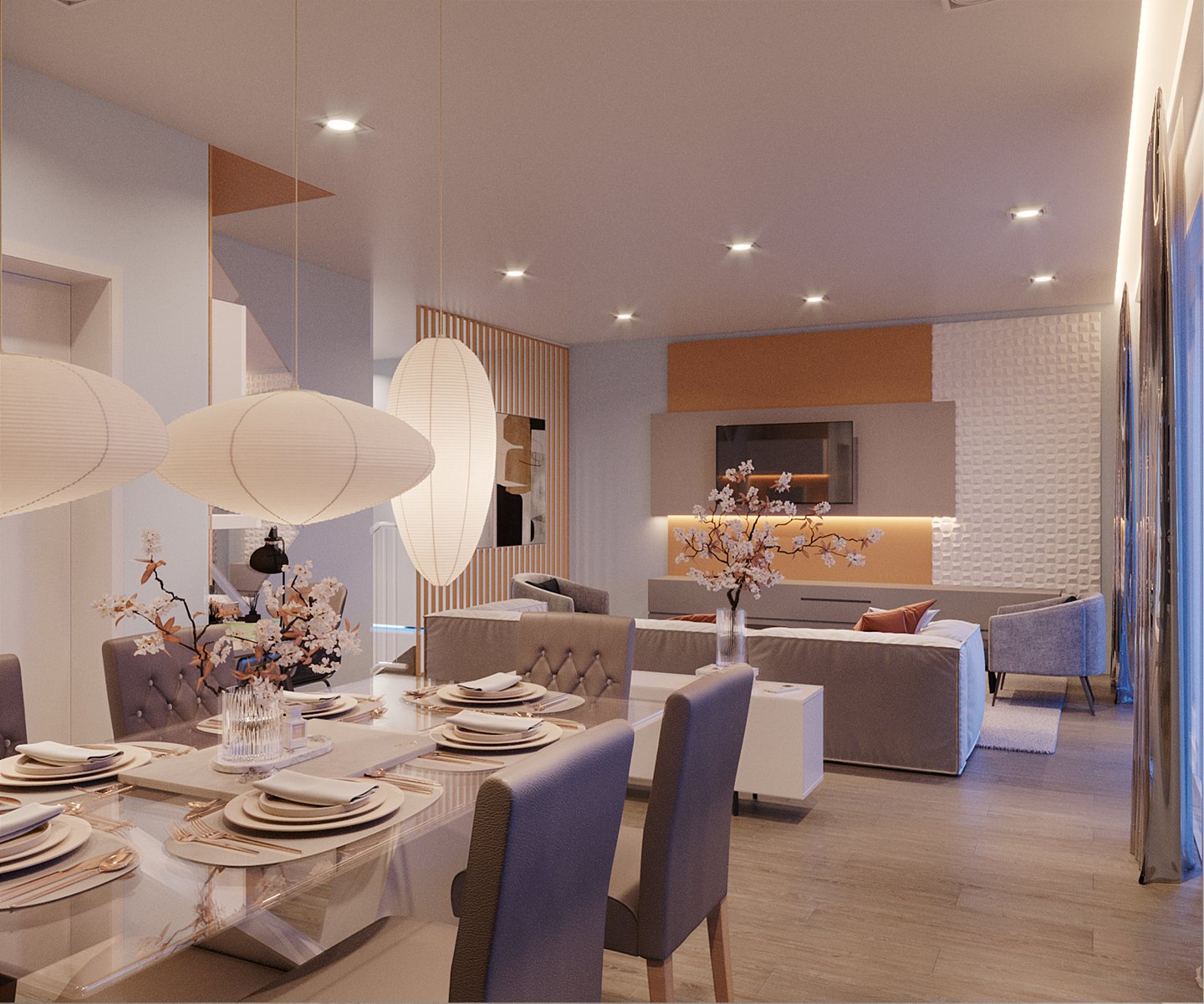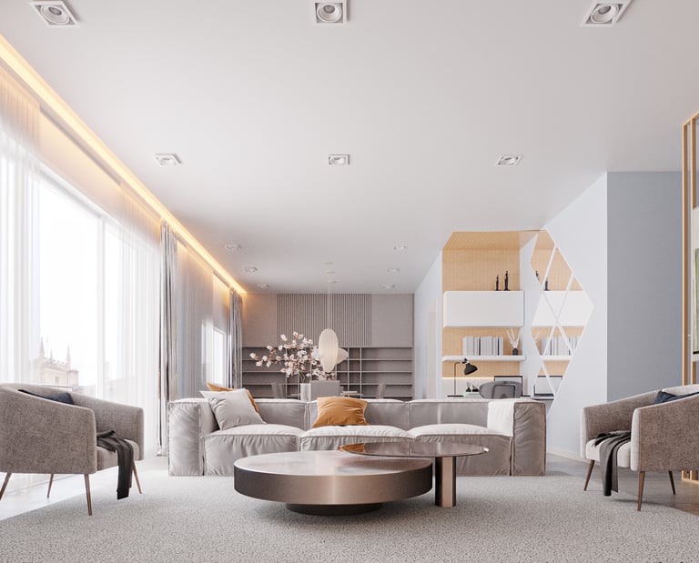 O projeto de interiores desta sala de estar é um exemplo de como as escolhas dos materiais e as soluções funcionais podem contribuir para criar um ambiente confortável e aconchegante. Os materiais utilizados no projeto são de alta qualidade e durabilidade.